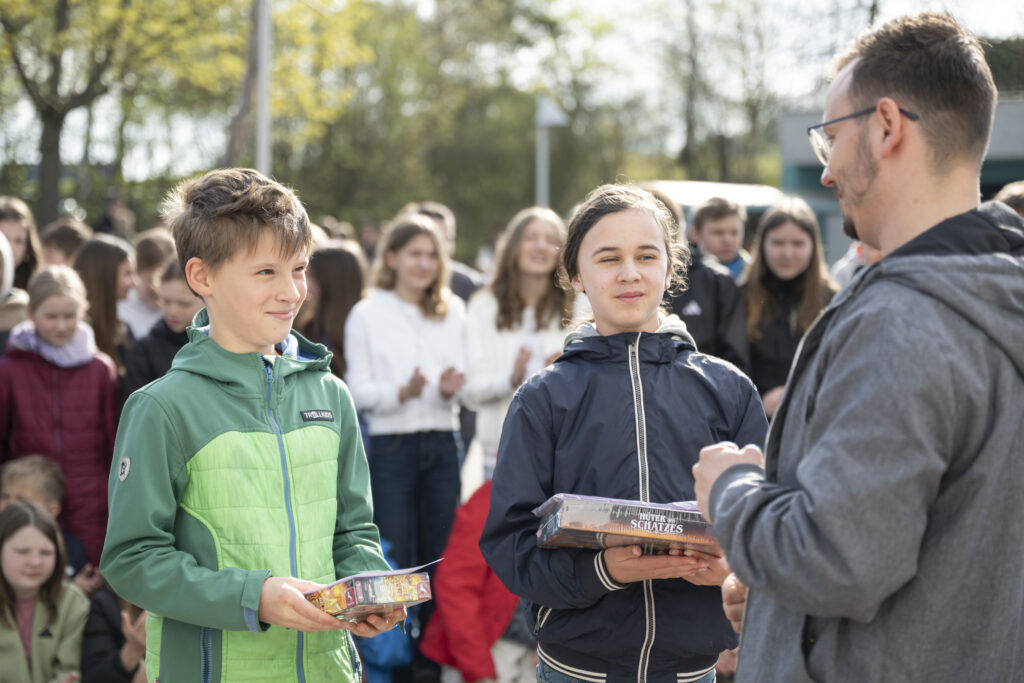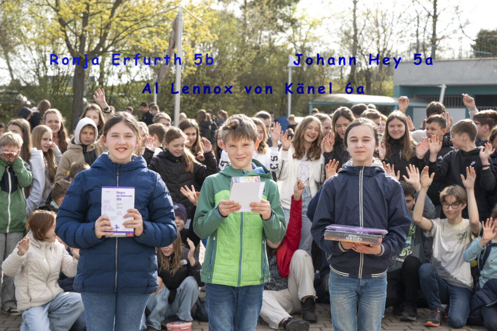 Wir gratulieren Johann Hey zum ersten Platz sowie Ronja Erfurth zu ihrem dritten Platz im deutschlandweiten Vergleich der Klassenstufe 5 und Al Lennox von Känel aus der 6. Klasse zum dritten Platz im deutschlandweiten Vergleich. Johann Hey gelang auch auch der weiteste Känguru-Sprung mit 17 von 24 richtigen Antworten hintereinander.